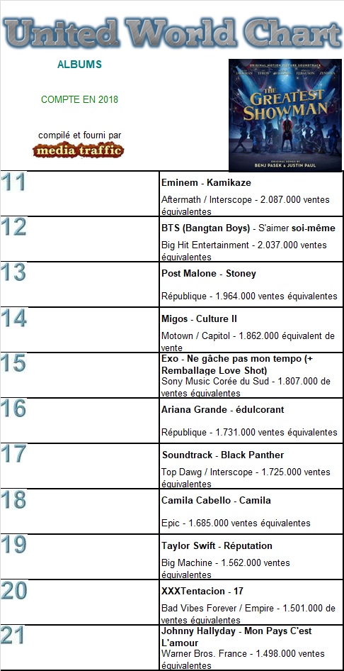 Semaine 49/2018 Selon le Snep, établi par GFK
