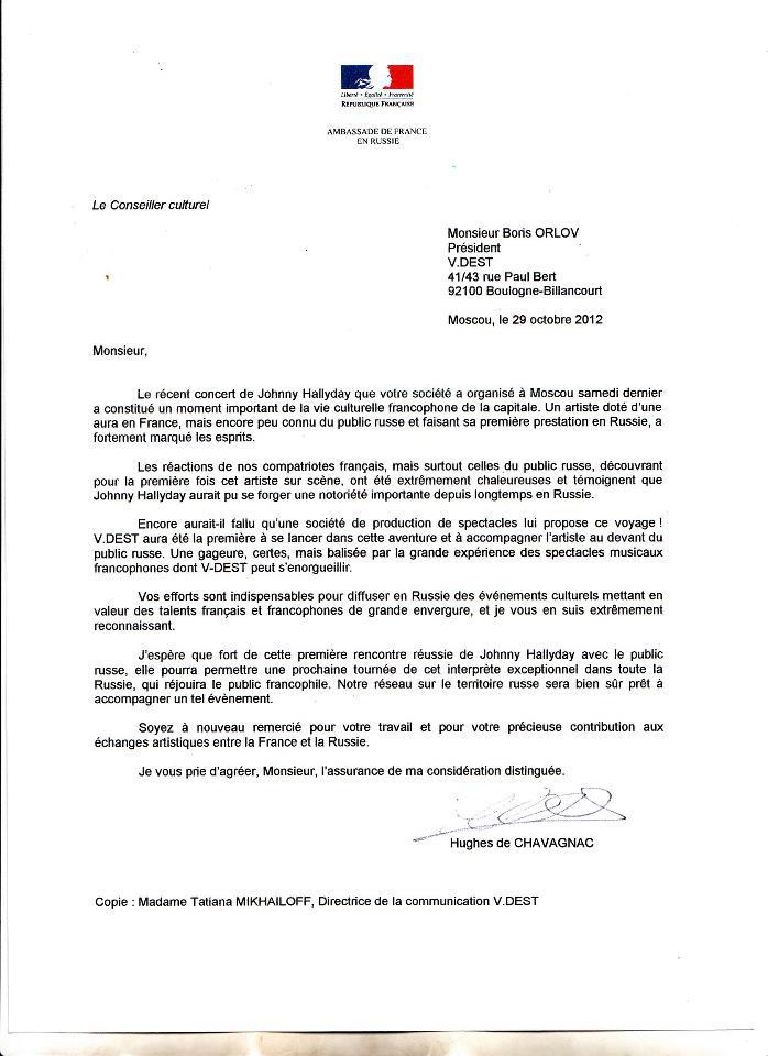 Lettre de l'Ambassade de Russie le 29/10/2012