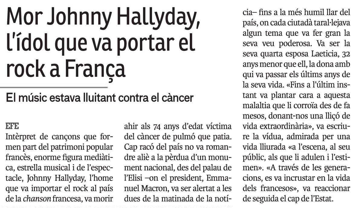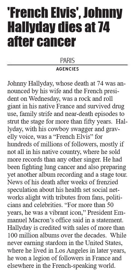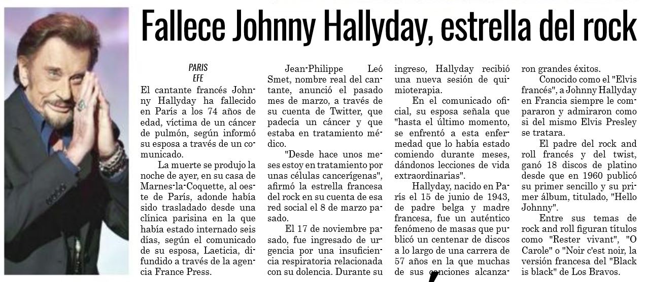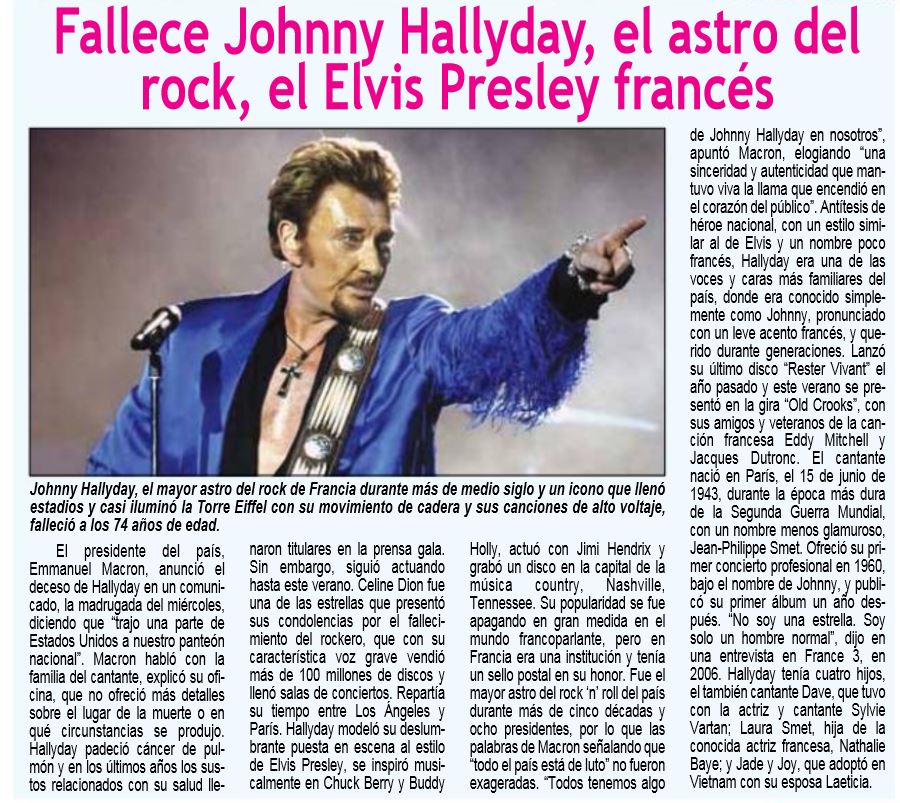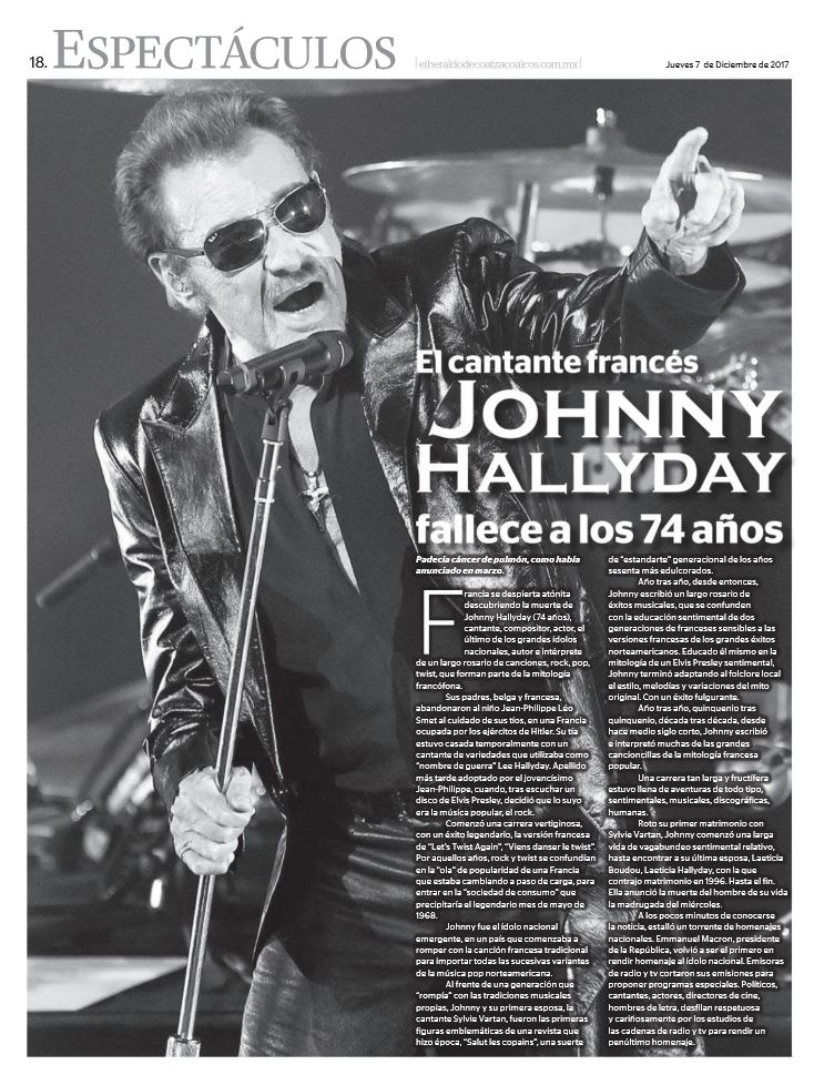 Johnny décède dans la nuit du 5 au 6 décembre.