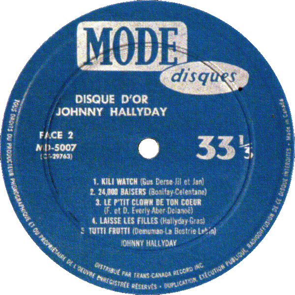 LP Vogue MD-5007 Le disque d'or de Johnny Hallyday Mono