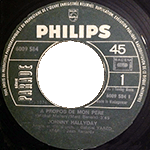 SP Philips 6009584 - A propos de mon père (imprimerie SNIC) (titres en rouge) A l'hôtel des cœurs brisés (titres en orange écriture grise sur label) (titres en orange écriture noire sur label) - 1975 - Pochette normale - Cotation: 30 € - Pochette orange - cotation: 60 € - Impression malgache sur vinyl vert pochette identique - cotation: 150 €SP Philips 6009664 - Hey lovely lady - La fille de l'été dernier (imprimerie SNIC) (pochette couleur gros logo) (pochette couleur petit logo) - 1975 - Pochette normale - Cotation: 30 € - Pochette orange - cotation: 100 € - Impression malgache sur vinyl vert pochette identique - cotation: 150 € SP Philips 6042042 - La terre promise - La première fois (2 labels différents) - 1975 - Pochette identique - Cotation: 30 € SP Philips 6042122 - Requiem pour un fou - Les chiens de paille - 1976 - Pochette identique - Cotation: 30 € SP Philips 6042160 - Derrière l'amour - Joue pas de Rock' n ' Roll pour moi - 1976 - Pochette identique - Cotation: 30 €
