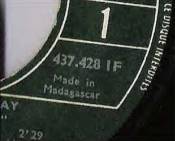 MADAGASCAR (Pour plusieurs de ces disques il y a deux types d'impression, une française (pochette identique à la métropole, et une malgache (pochette différente) SP 45 Tours Pour plusieurs de ces disques il existe une édition imp SNIC et une imp malgache SP Philips 370639 - A tout casser - Cheval d'acier - 1968 SP Philips 370640 - Le ciel nous fait rêver (version chantée et instrumentale) - 1968 - Pochette française - Cotation: 200 € SP Philips 370648 - Le mauvais rêve - Hit parade - 1968 - Pochette française - Cotation: 200 € SP Philips 370743 - Cours plus vite Charlie - J'ai peur je t'aime - 1968 - Pochette française - Cotation: 150 € SP Philips 370765 - Je suis l'amour - Fumée - 1968 - Pochette française - Cotation: 150 € SP Philips 370599 - Que je t'aime - Voyage au pays des vivants (2 labels différents) - 1969 - Pochette française - Cotation: 100 € SP Philips 370798 - Rivière ouvre ton lit - Je te veux - 1969 - Pochette française - Cotation: 100 € SP Philips 336292 - Ceux que l'amour à blessés - Si tu pars - 1970 - Pochette française - Cotation: 80 € SP Philips 6009089 - Deux amis pour un amour - Rendez moi le soleil - 1970 - Pochette française - Cotation: 80 € SP Philips 6009122 - Essayez - C'est écrit sur les murs - 1970 - Pochette identique - Cotation: 80 € SP Philips 6009174 - Fils de personne - Il faut boire à la source - 1971 - Pochette identique - Cotation: 70 € SP Philips 6118001 - Oh ma jolie Sarah - Que j'aie tort ou raison - 1971 - Pochette identique - Cotation: 70 € SP Philips 6009215 - Comme si je devais mourir demain - Hello US USA - 1972 - Pochette identique - Cotation: 60 € SP Philips 6009236 - Rien ne vaut cette fille là - Toi tu voles l'amour - 1972 - Pochette identique - Cotation: 60 € SP Philips 6009268 - Sauvez moi - Ma main au feu ( Imp SNIC ,verso blanc) - 1972 - Pochette identique - Cotation: 60 € SP Philips 6009301 - Avant - Tu peux partir si tu le veux - 1972 - Pochette identique - Cotation: 60 € SP Philips 6009334 - Comme un corbeau blanc - Toute la musique que j'aime - 1973 - Pochette identique - Cotation: 50 € SP Philips 6009384 - J'ai un problème - Te tuer d'amour ( label vert clair - imprimerie française) (label vert fonçé - imprimerie française) (imprimerie malgache) - 1973 - Pochette identique - Cotation: 50 € SP Philips 6009405 - Le feu - J'ai besoin d'un ami - 1973 - Pochette identique - Cotation: 50 €